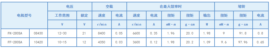 型号:FK-280SA 直流有刷电机是一种直流电机,有刷电机的定子上安装有固定的主磁极和电刷,转子上安装有电枢绕组和换向器。直流电源的电能通过电刷和换向器进入电枢绕组,产生电枢电流,电枢电流产生的磁场与主磁场相互作用产生电磁转矩,使电机旋转带动负载。